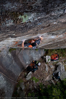 After a few failed attempts to find a suitable project for my two week trip, I resigned to just trying lots of routes and onsights. I ended up onsighting 4 13a's, flashing a 13a and a 13b, redpointing three other 13b's, two 13'c second try, and a pesky 13d (pictured below) called Swing Line that I'd tried a bit on a previous trip.