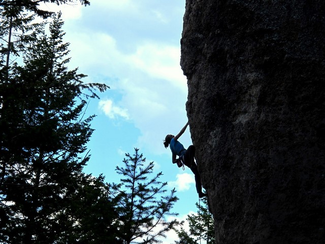 Alli climbing on the Godfather Boulder, Leigh Creek