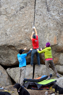We went out to Pipestone Pass (near Butte, Montana) again last weekend and spent a full day in an area called The Druthers, as well as in other boulder fields surrounding that area. In just a day, many new problems were cleaned and climbed--mostly easy/ moderate problems, but some harder ones as well! Plus, a handful of new projects were born. Following are some photos of the day:
