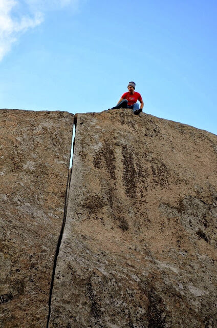 Christine Balaz Sjöquist doing a possible first ascent (or a sandy one, in any case) of The Dwarf, V Fun