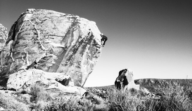 | David tops out Fear of a Black Hat (V9), Red Rocks. Brother, Rickard, will top it out next go. |