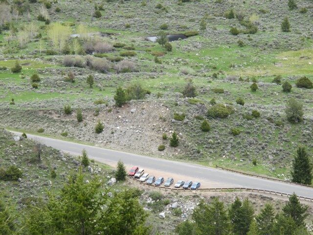 Folks from Colorado, Montana, Texas, and more all parking properly at the pullout.